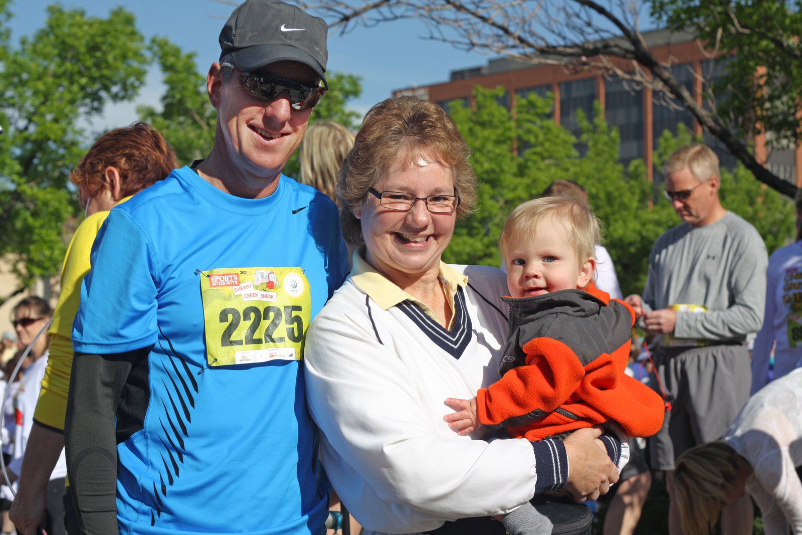 Kyle also participated in the Diaper Sneak. Kyle did great! He came crawling towards me at the finish line, with only one 'pause' to look up and see what everyone was cheering about. It was his first race, his first ribbon, and a proud moment for mommy and daddy.